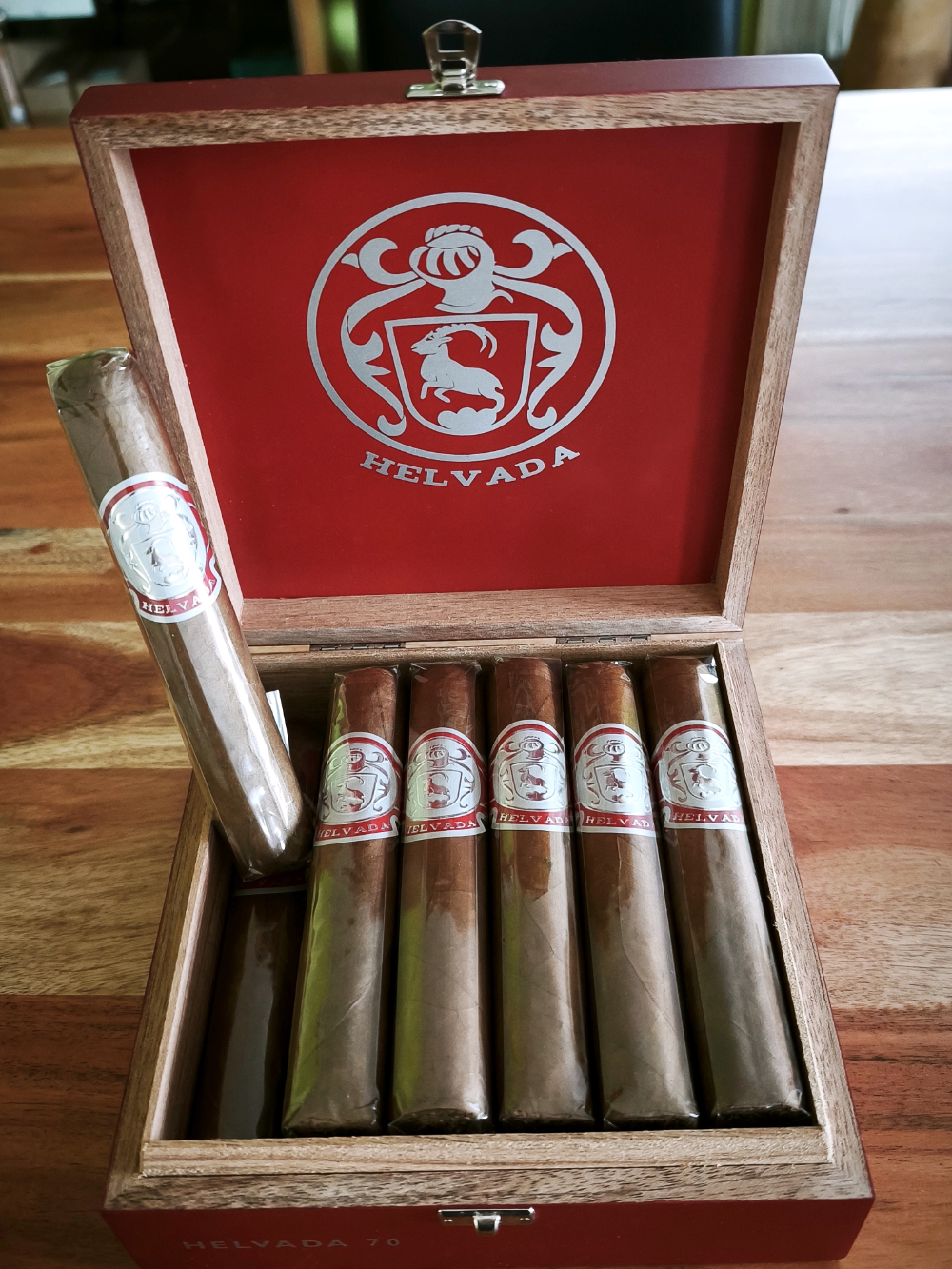 Die Helvada 70 wurde im Frühling 2020 im Markt eingeführt. Die Zigarre durchlief mehrere Test-Smokes durch ein breiteres Publikum von Zigarren-Aficionados. Daraus entstand dieses eher milde, aber doch sehr geschmackvolle Gordo-Format. Das Deckblatt ist ein Cameroon (Corte 3), das Umblatt ein Jalapa (Corte 2) aus Nicaragua und der Filler besteht aus den Tabaksorten Jalapa, Condega und Ometepe.